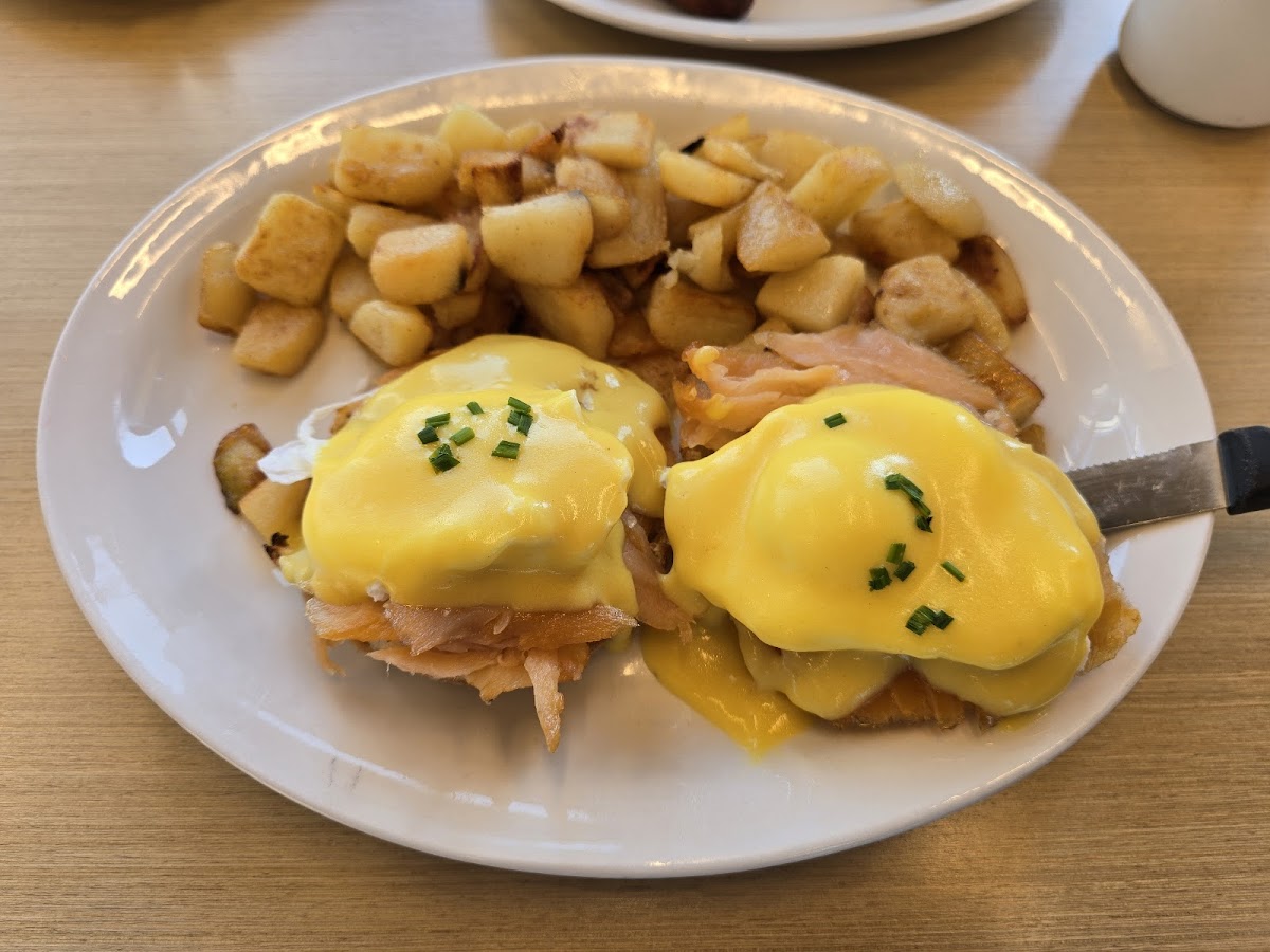 Menu highlights reflect a hearty approach to breakfast, including rich offerings like various styles of Eggs Benedict: the Smoked Salmon Benny adds a savory twist, while the Garden Benny brings in mushrooms and spinach for a bit of veggie balance. The Southwestern Hashed plate stands out with its blend of chorizo, avocado, and a creamy poblano avocado ranch—comfort food with a southwest kick. For families, the kids’ pancakes featuring chocolate chips or Nutella with strawberries offer an easy way to keep little ones happy.